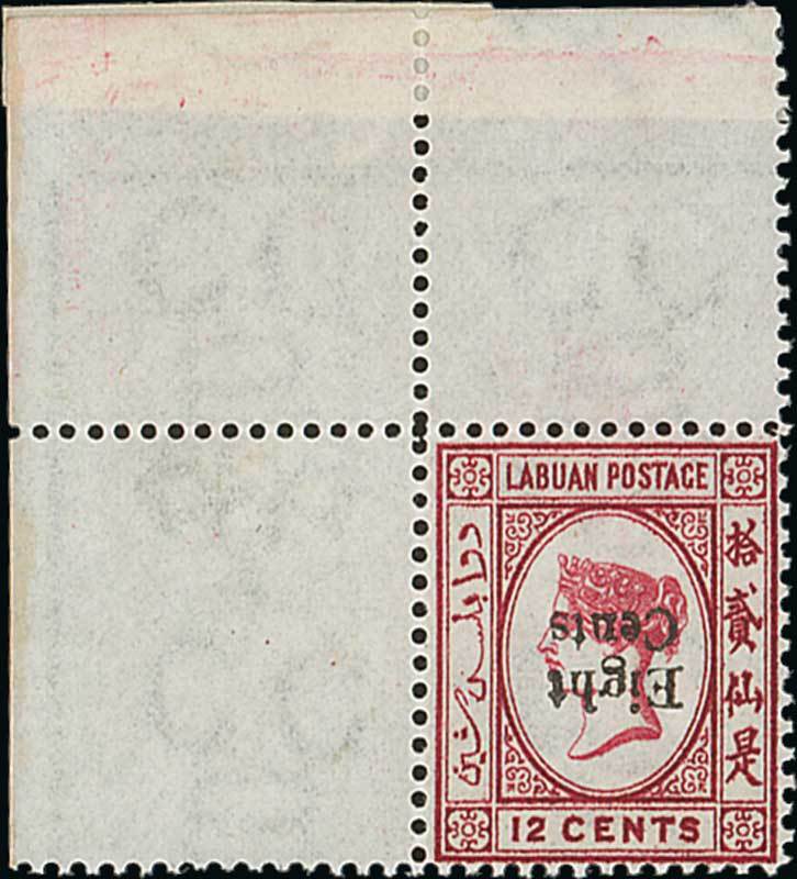 Note: Only one sheet of ten had the surcharge inverted, of which a vertical pair from the right of the sheet is in the collection of Her Majesty The Queen.