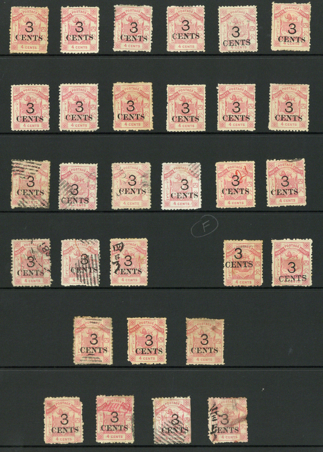 3c. on 4c. pink selection with unused/mint (12), used (9, two pen-cancelled) and forgeries (2); fair to fine. Also seven others. S.G. 16, £7,000+