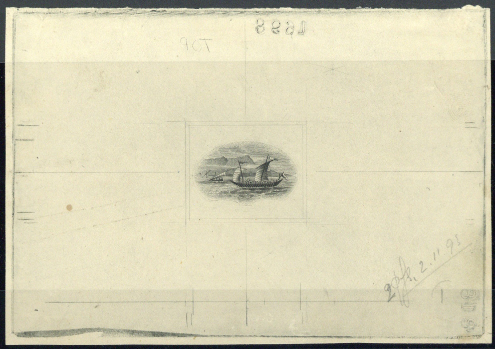 8c. vignette in black and showing outer frame lines and other working guide lines, on wove paper (123x85mm.) with reversed die numbers "1698" and "818" and dated in pencil "2.1..93" at foot