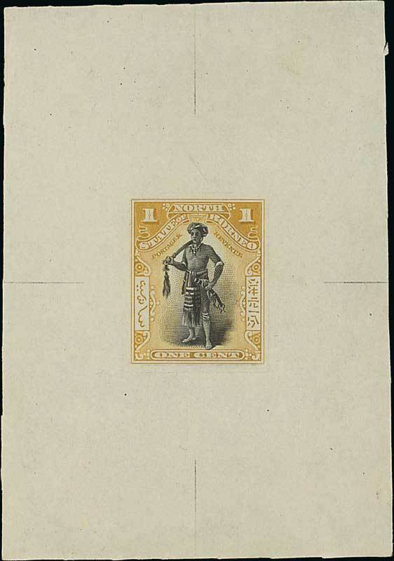 1c. in black and olive-bistre on wove paper (62x90mm.) showing traces of outer frame lines and four guide lines. Photo