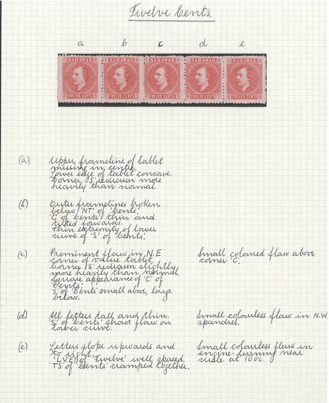 Set of five, 2c. strip of five, 4c. block of ten and a strip of six, 6c. block of ten, 8c. and 12c. strips of five, unused with gum in places, all but the singles written-up on pages with plating details; 4c., 6c., 8c. and 12c. used blocks of four with each stamp cancelled "S" in diamond of bars and most attractive as such. Generally good to fine. S.G. 3-7