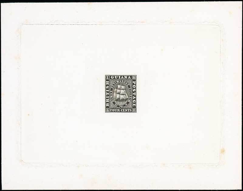 4c. engraved die proof in black on India paper, inset on soft card (147x115mm.); a few minor light tones. A spectacular proof. Photo