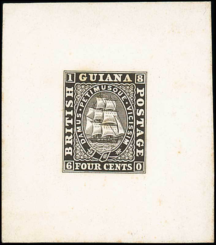 4c. engraved die proof in black on India paper, stamp-size and affixed to card (48x54mm.); traces of light toning, otherwise fine. Photo