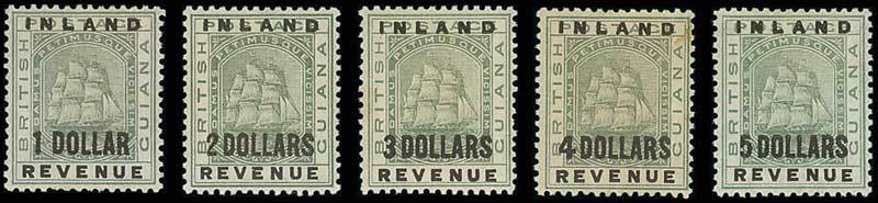 1888-89 1c. to $5 with additional 4c. showing large figure of value and 6c. "6" with straight top, and 1889 (2 June) "2" on 2c., large part original gum; a couple with off-white gum as usual. S.G. 175-192, 178a, 179a, £19,46. Photo for $ values