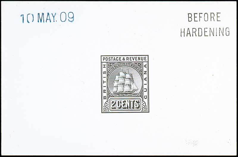 1910 redrawn 2c. die proof in black on glazed card (92x60mm.), marked "before hardening" and dated "10 may 09". Photo