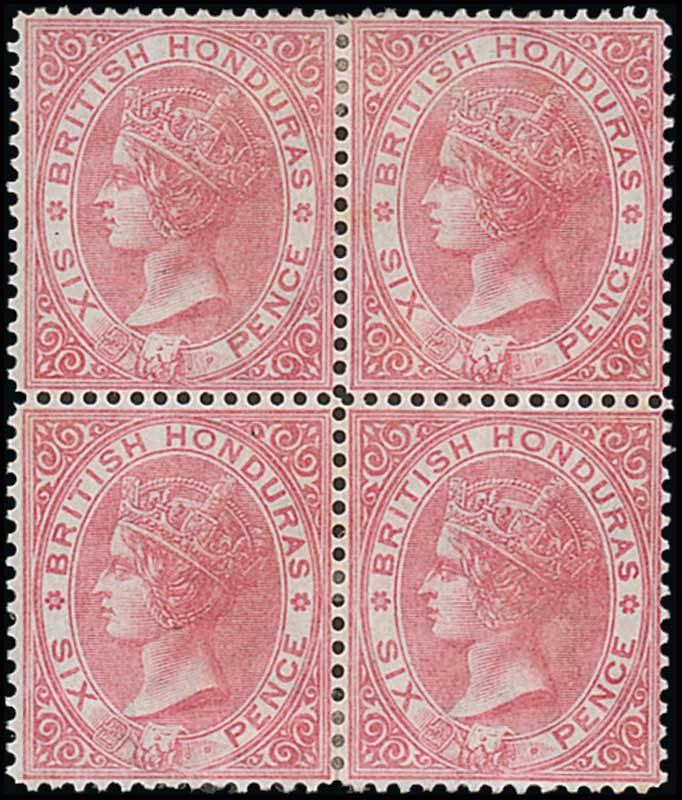 6d. rose block of four, fresh unused with part to large part original gum. A fine and very rare multiple. B.P.A. Certificate (2007). S.G. 15. Photo