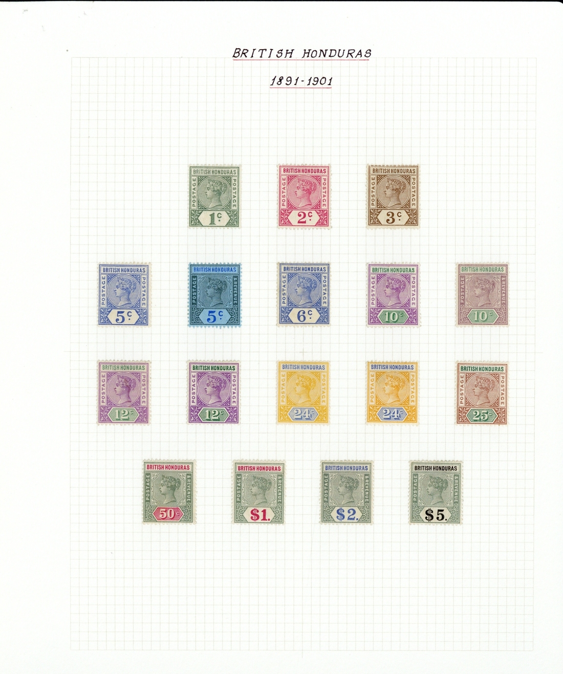 1891-1901 1c. to $5 set of fifteen with additional 12c. and 24c. shades, good to fine mint. S.G. 51-65, £700