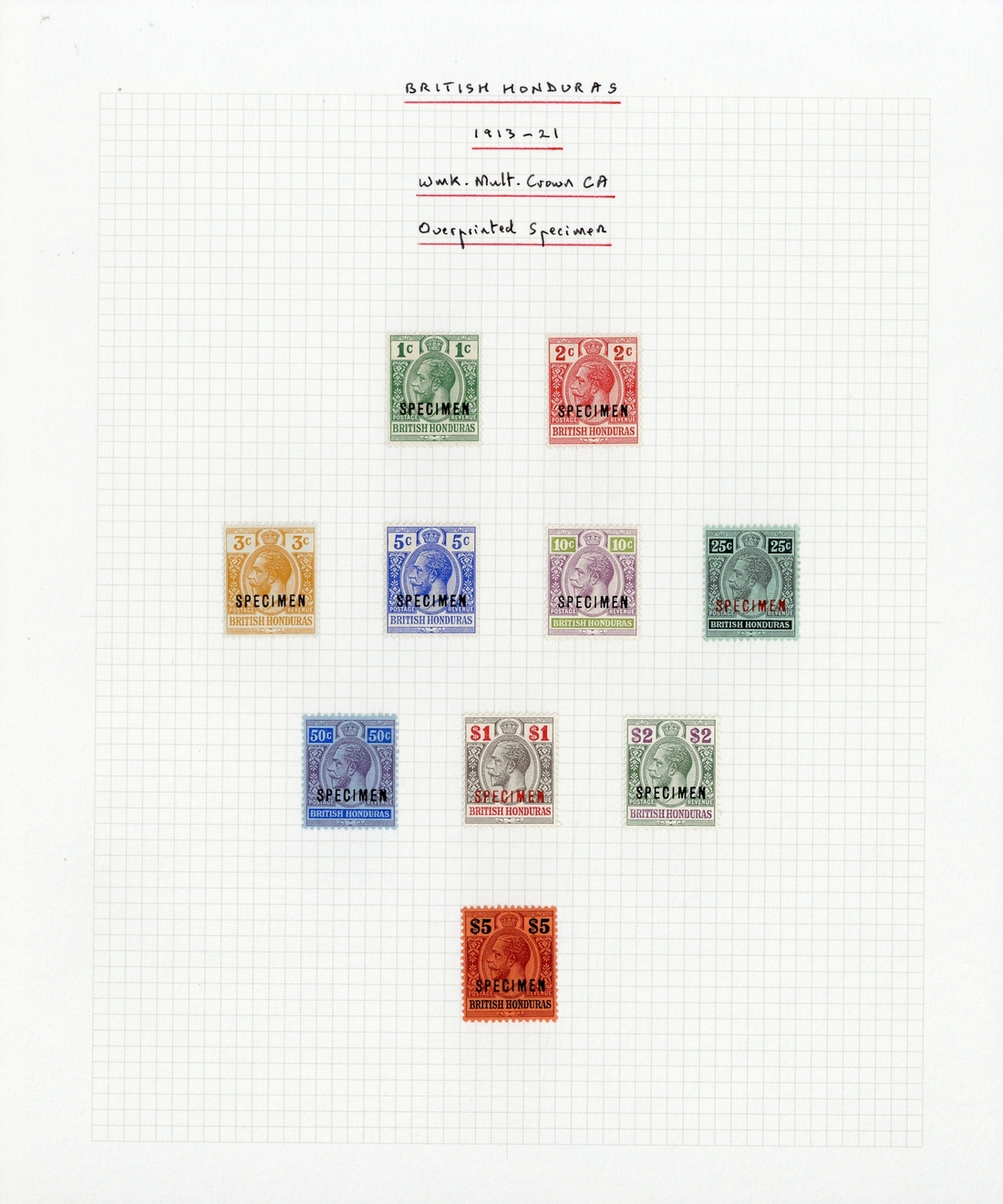 1913-21 and 1915-16 sets, 1917-18 War 1c. and 3c., 1921 2c., 1921 1c., 1922 4c., 1922-33 set of thirteen with additional 5c. and MCA 25c. showing broken "m" and Postage Due 1923 set of three, all overprinted or perforated "specimen", good to fine mint. Cat. £1,195