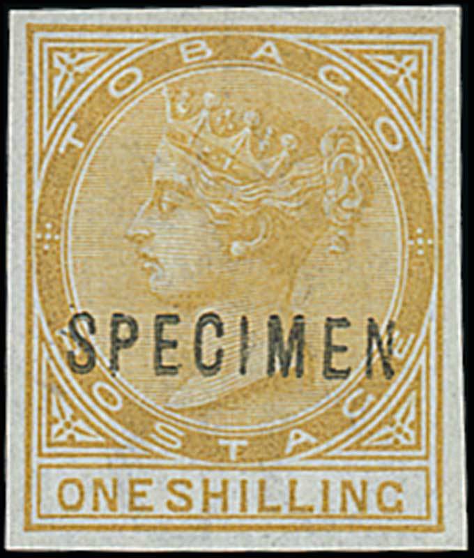 1/- yellow-ochre overprinted "specimen" (D11), fresh with large part original gum; very fine. Photo