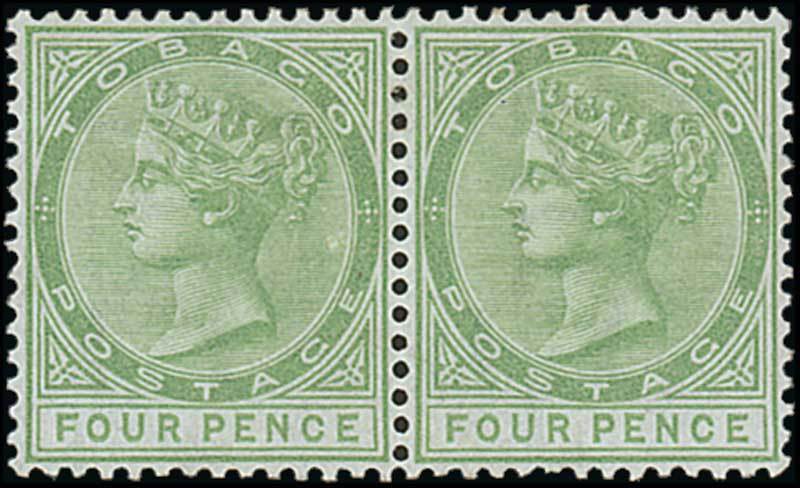 4d. yellow-green horizontal pair, fresh with large part original gum; a fine and scarce multiple. S.G. 10, £600+. Photo