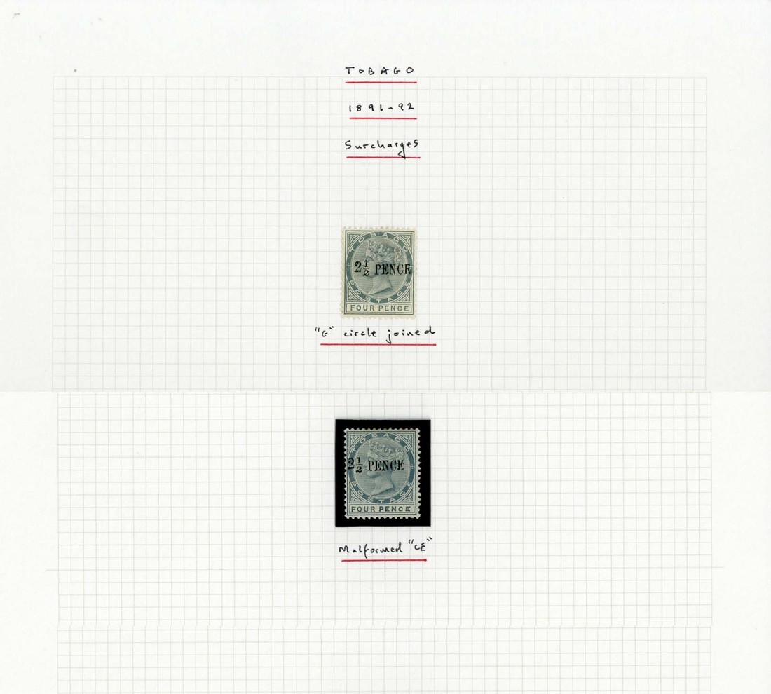 "½ penny" on 4d. grey and "2½ pence" on 4d. grey (4), one with variety malformed "ce" in "pence", another with "g" joined to circle, mint; the malformed "ce" with a vertical crease, otherwise sound. S.G. 30, 31, 31a, £298+