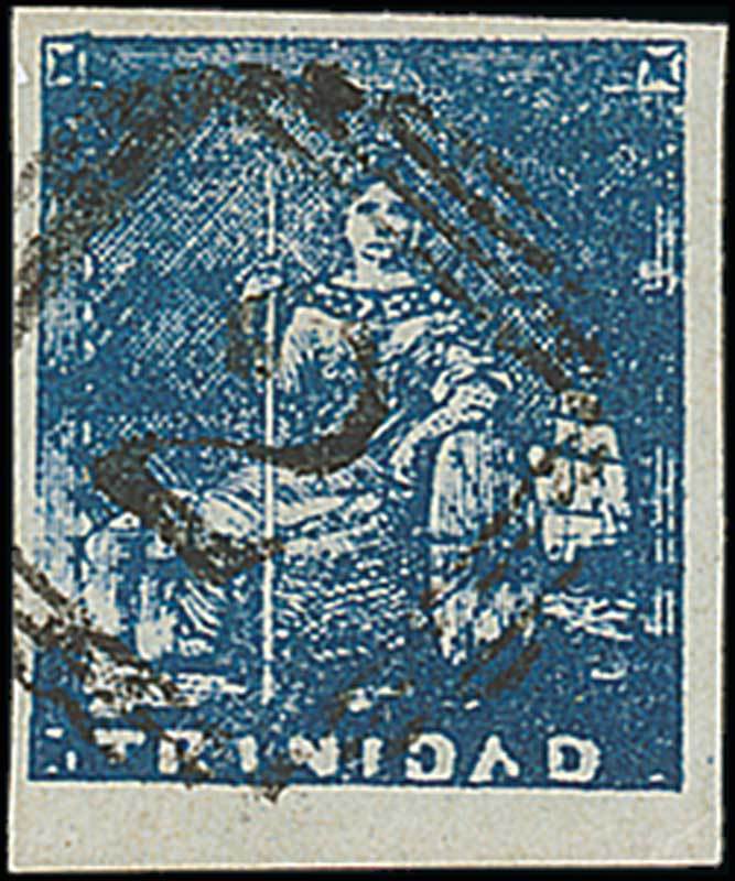 (1d.) deep blue with sheet margin at foot and large margins on the other three sides, neatly cancelled "2"; slightly thinned though of very fine appearance. R.P.S. Certificate (1945). S.G. 16, £1,000. Photo