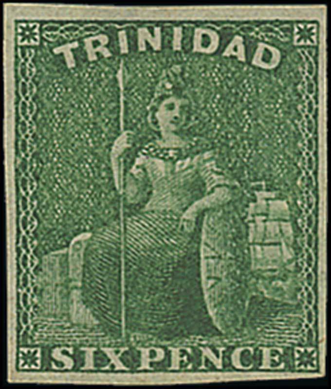 6d. green with good to large margins and traces of original gum. An extremely rare stamp of which we recorded only one other example (ex Hurlock) which is cut-into at right. B.P.A. Certificate (1964). S.G. 28, £12,000. Photo