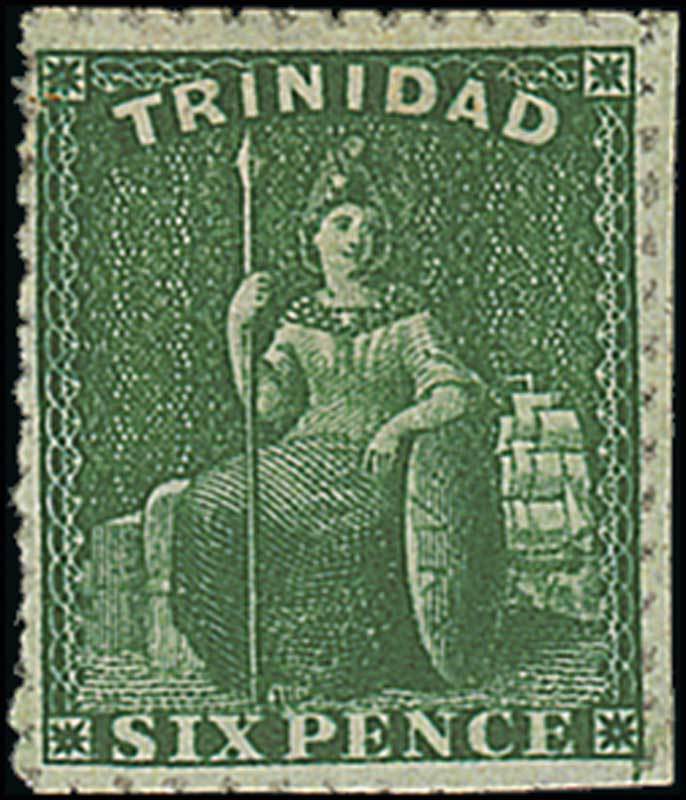 6d. deep green with perforations on all sides, strong colour, unused without gum; fine and very rare. R.P.S. Certificate (1942). S.G. 36, £2,750. Photo