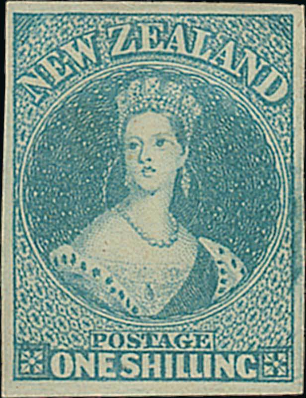1/- blue-green with large margins, unused without gum; small thin towards upper left nevertheless a magnificent looking example of wonderful fresh colour. Extremely rare in such condition. Odenweller Certificate (2006). C.P. A6c(2), $35,000; S.G. 17, £17,000. Photo