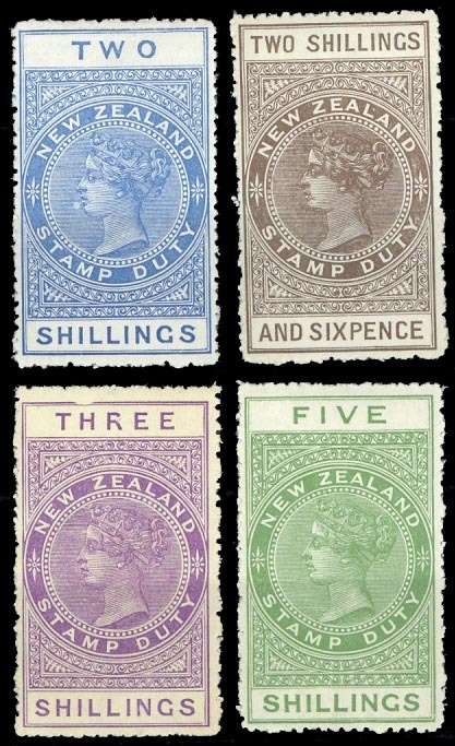 2/- blue, 2/6d. grey-brown, 3/- purple and 5/- yellow-green, fine unmounted mint. C.P. Z2g, Z3j, Z4j, Z6g, $2,250; S.G. F98-F100, F102, £475
