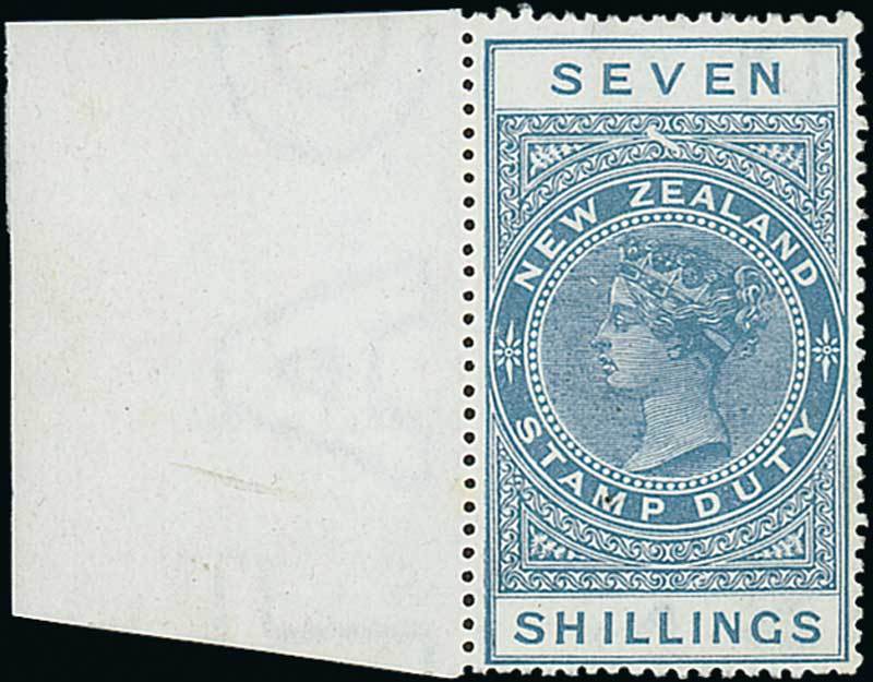 7/- pale blue with margin at left, fine unmounted mint. C.P. Z8j, $2,000; S.G. F117, £300. Photo
