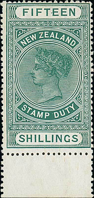 15/- green with margin at foot, fine unmounted mint. C.P. Z14l, $5,000; S.G. F141, £950. Photo