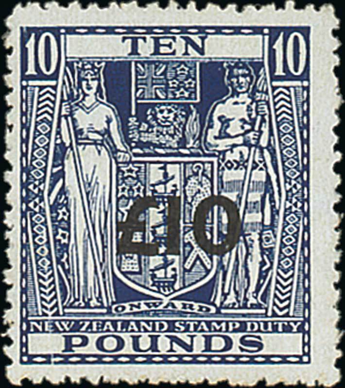 Surcharged £10 on £10 deep blue, fine lightly mounted mint. S.G. F216b, £475. Photo
