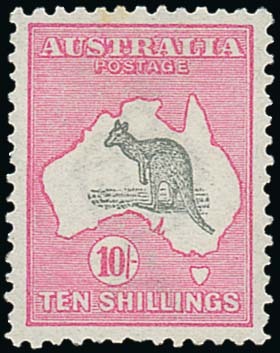 10/- grey and pink, well-centred, one shortish perf at foot, fine mint. S.G. 14, £900; BW 47A, $2000. Photo