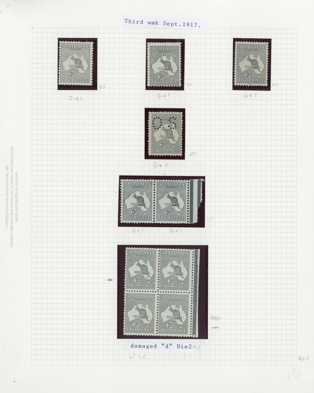 2d. grey mint range comprising a Die IIA block of four with trimmed interpanneau margin at right and showing broken "d" in value circle, pairs (2, one with "CA" monogram) and singles (7, one perf "OS"), mostly fine. BW 7/8, $1375