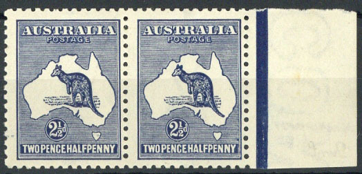 2½d. indigo marginal horizontal pair with watermark inverted, fresh and fine mint. S.G. 36aw, £260; BW 11a, $550