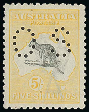 5/- grey and pale yellow perf "OS", fine mint. S.G. O50, £650; BW 44Db, $1250. Photo