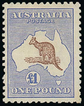 £1 chocolate and dull blue, centred to left, a few shortish perfs at foot and light central horizontal crease not affecting appearance. S.G. 44, £3,000. Photo