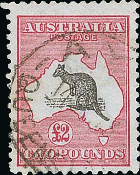 £2 black and rose, a "used" example with B.P.A. cachet "50" on reverse, fine. R.P.S. Certificate (1971). BW 55c, $7500. PhotoF