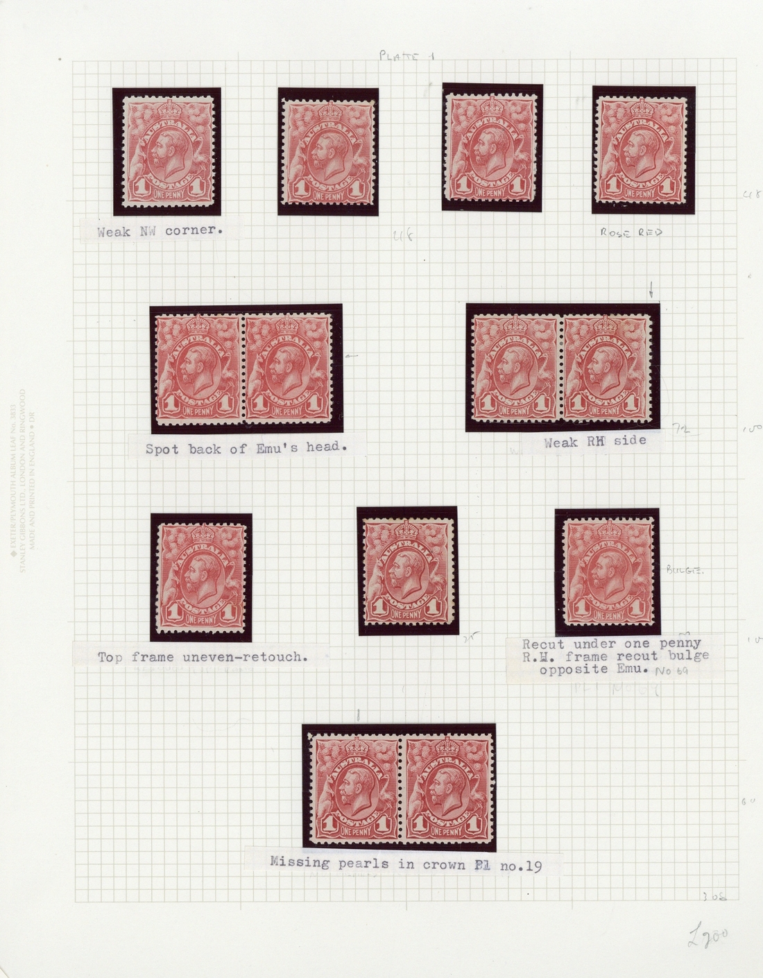 A mint study including blocks of twelve (3, one with imprint at left and with imprint at right), corner blocks of six (3, one with a vertical row of perfs double), blocks of four (6, one with central horizontal perfs double and one with central vertical perfs double), pairs (5) and singles (22, one used), a number with plate flaws and re-entries identified, condition generally fine. S.G. 17/17c