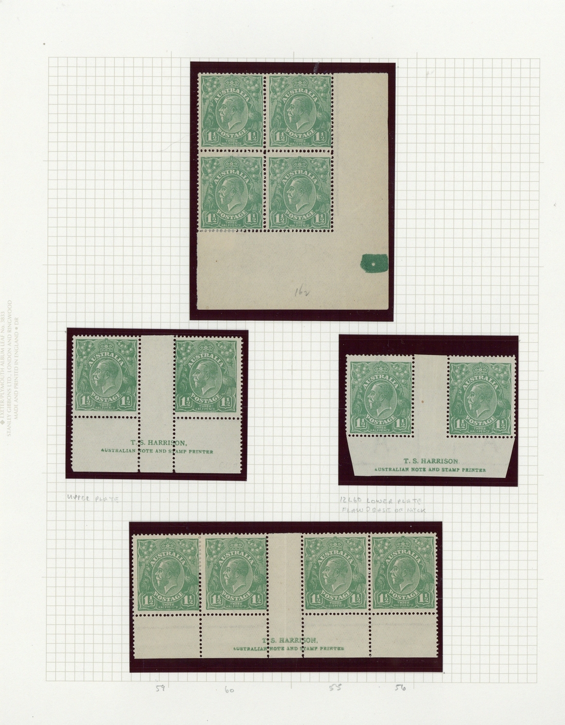 1½d. green, single watermark, blocks of six and four (2), strip of four with Harrison imprint, pairs (4, two with Harrison imprint) and singles (20, three perf "OS"), mostly fine. S.G. 61; BW 88