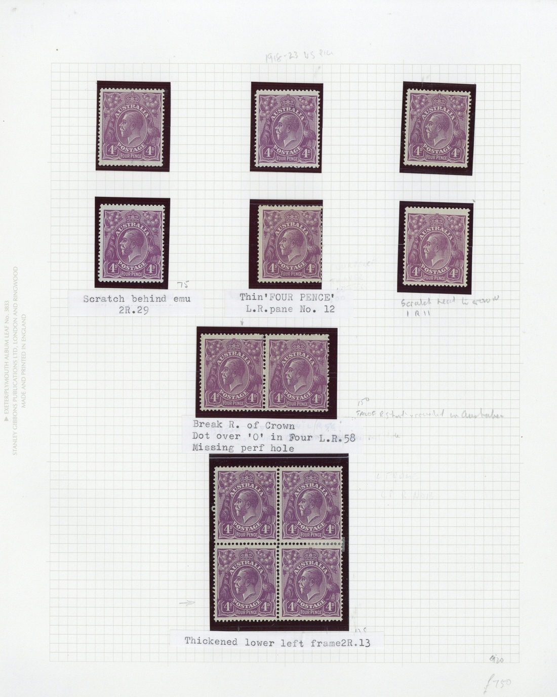4d. violet, single watermark, block of four, pair and singles (6, one with "fourpence" in thinner letters - centred to right), mostly fine mint. S.G. 64, £626; BW 111, $1200+