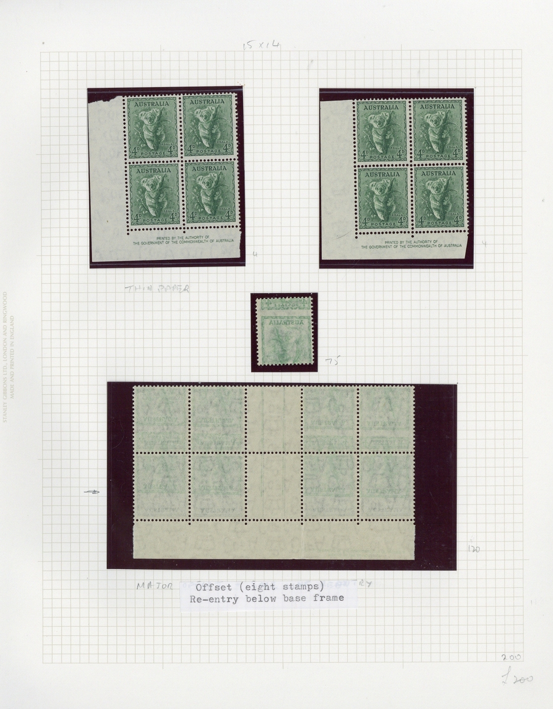 ½d. to 1/-, perf 15x14 or 14x15, plus 1941 surcharges, a mint study including a range of imprint blocks of four with 2d. scarlet (no imprint), 3d. Authority with double perfs at left and a top left corner block with imprint at top of sheet and 4d. corner without imprint, 2d. purple block of four with medal flaw, 4d. with strong offset on reverse and 2½d. on 2d. with misplaced surcharge; condition generally fine