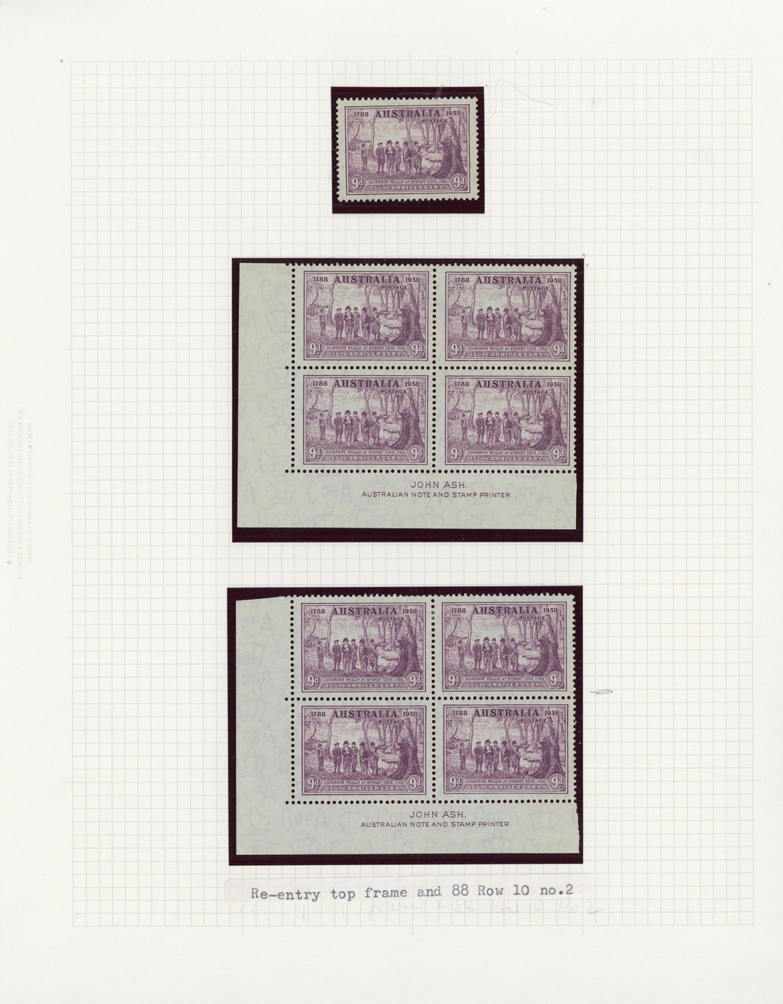 2d. scarlet blocks of four (3, one with imprint, one with imprint and plate number "1" and the third from top left corner with plate number "1"), pairs (2) and a single, 3d. imprint block of four, a pair and single, and 9d. corner blocks of four with imprint (2, one with re-entry) and a single, fine mint. S.G. 193-195; BW 175-177, $1600+