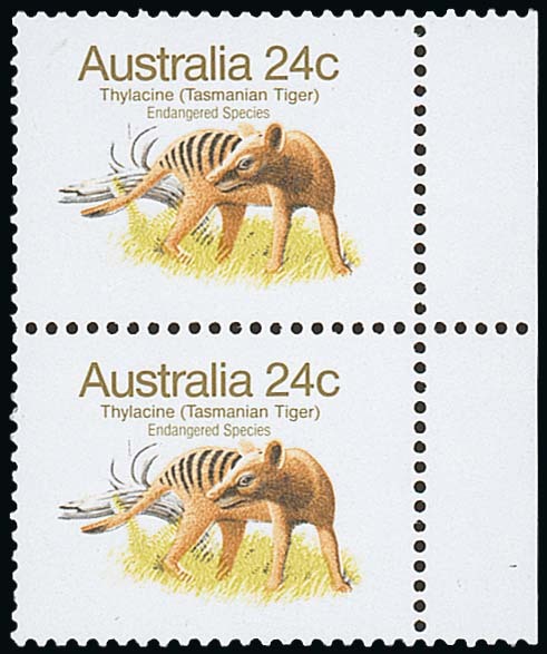 1981-83 Wildlife 24c., 1st printing, a vertical pair with margin at right, variety dark green omitted, fine unmounted mint. With normal for comparison. Unlisted in S.G. and BW. Photo