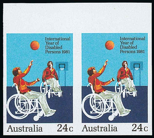 1981 (Sept.) Disabled Persons, 24c. marginal imperforate plate proof pair on gummed paper, fine. S.G. 827. Photo