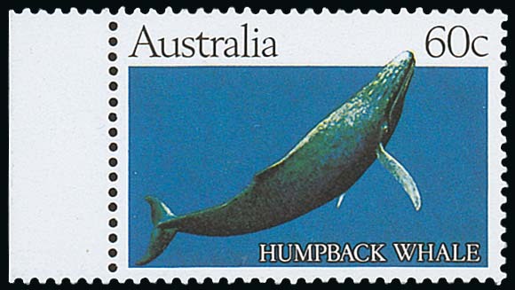 1982 (Feb.) Whales 60c., marginal, trial printing with solid greenish blue background, fine unmounted mint. S.G. 841a, £250; BW 930E(1), $350. Photo