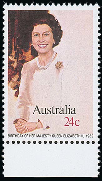 Note: Although details are lacking, it would appear an initial printing of this stamp was made with 24c. denomination, but following the letter rate increase to 27c. on 21 April 1982, new plates had to be prepared showing 27c. denomination.
