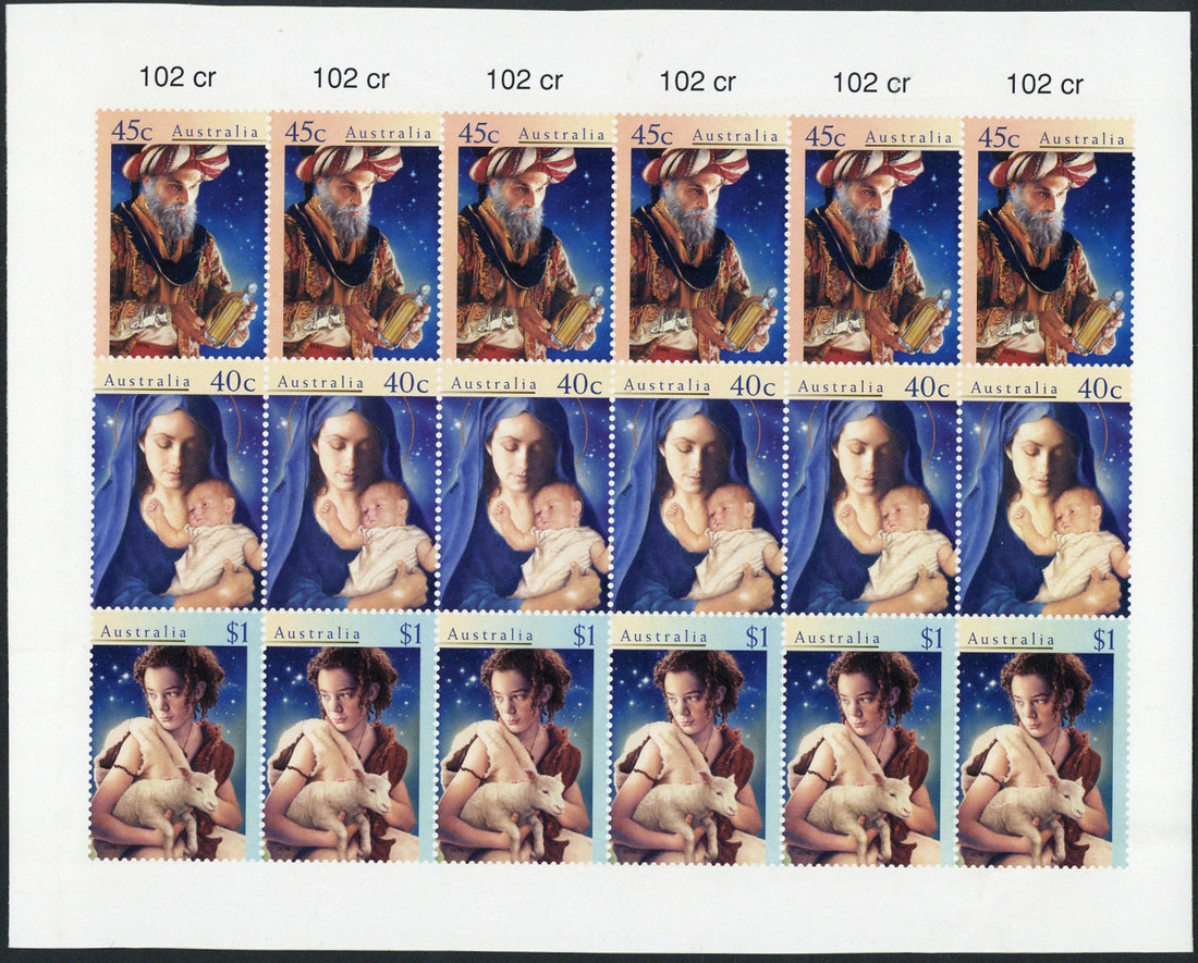 1996 (Nov.) Christmas imperforate proof sheetlet of eighteen, some creases and folds. Believed to be the only known example. S.G. 1656-1658; BW 2006-2008