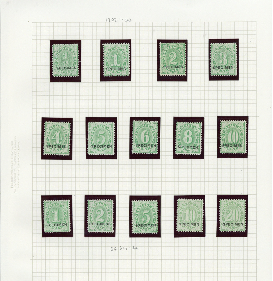 1902-04 ½d. to 20/- set of fourteen with additional 5d. and 8d., each overprinted "specimen", fine mint. S.G. D13s-D44s, £1100
