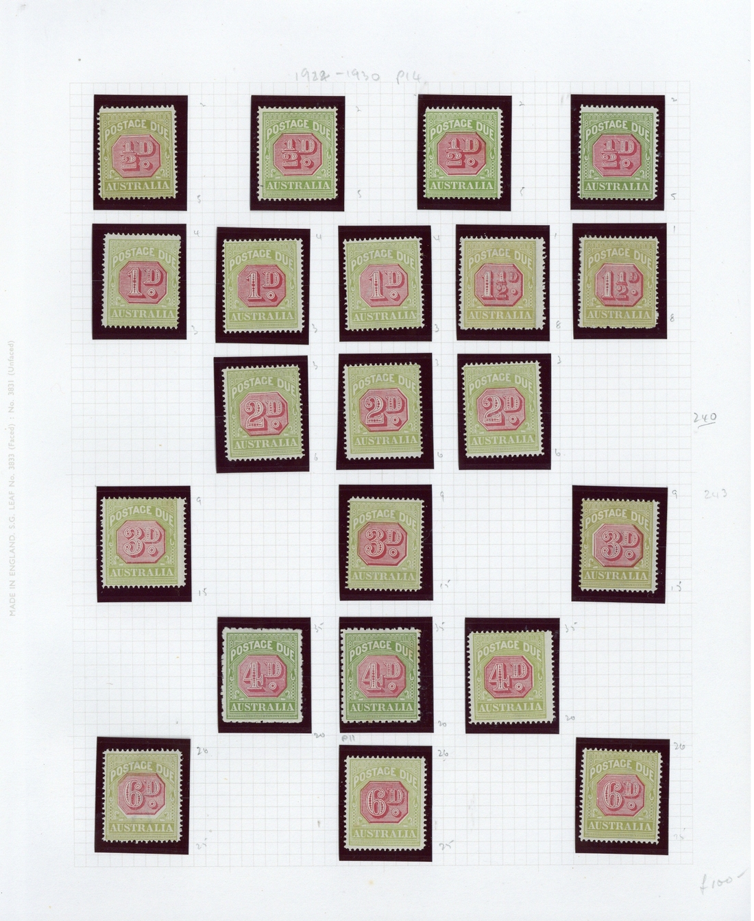 1922-30 perf 14 ½d. (4), 1d. (3), 1½d. (2), 2d. (3), 3d. (3), 4d. (3) and 6d. (3), perf 11 4d., 1931-36 perf 14 1d., 2d. (2) and perf 11 ½d. to 1/- with additional 1d. Ash imprint block of four and a single, mostly fine mint. S.G. D91-D111, £785+