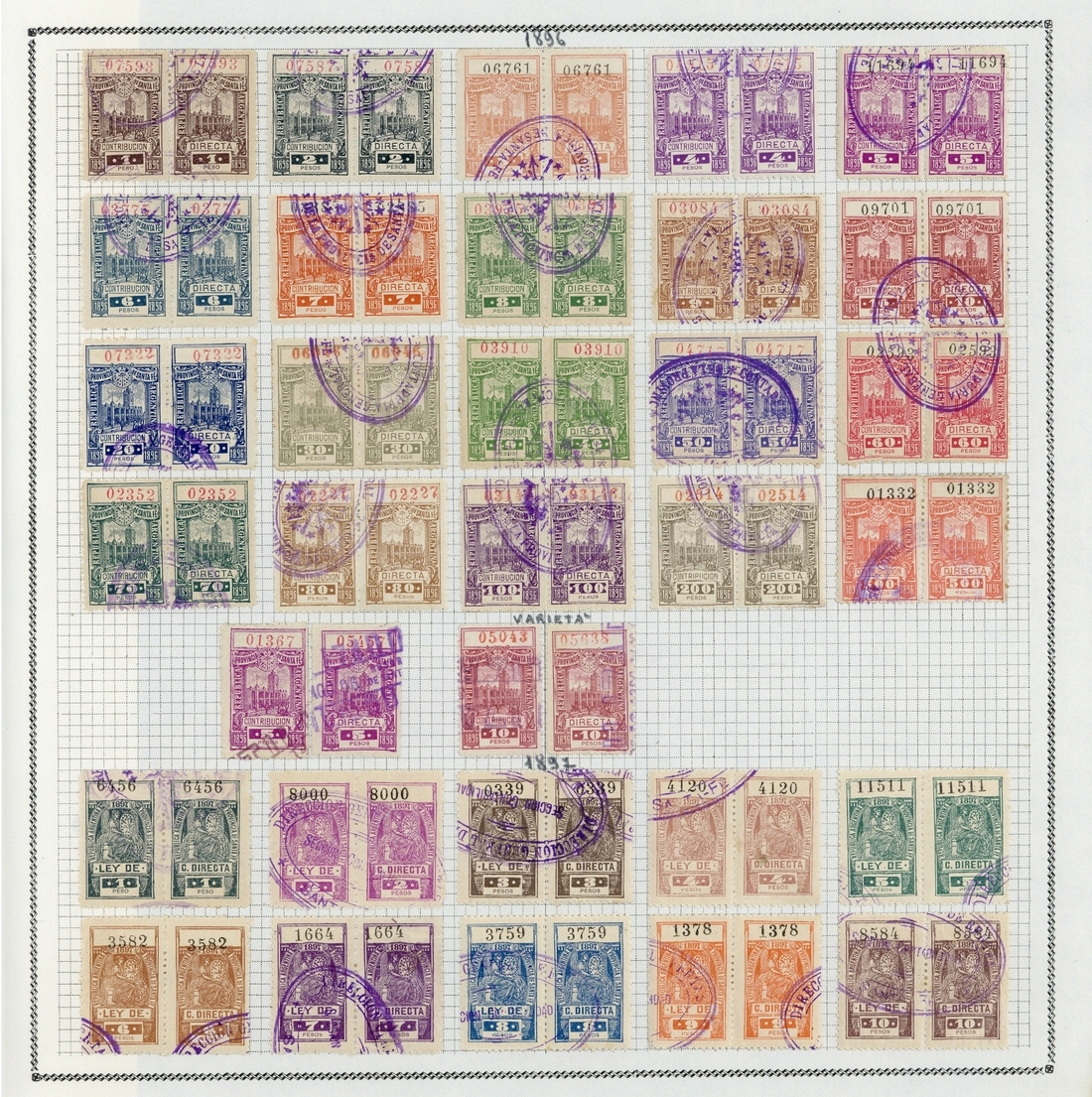 1879-1945 Santa Fe mint and used collection housed in a red album, contained in a carton, over 3,500 stamps, mostly different, including Contribucion Directa, Comision de Fomentes, Documentos, Guia, Patentes, Impuestos, Haciendas y Frutos, many high values, etc., chiefly fine and a remarkable lot