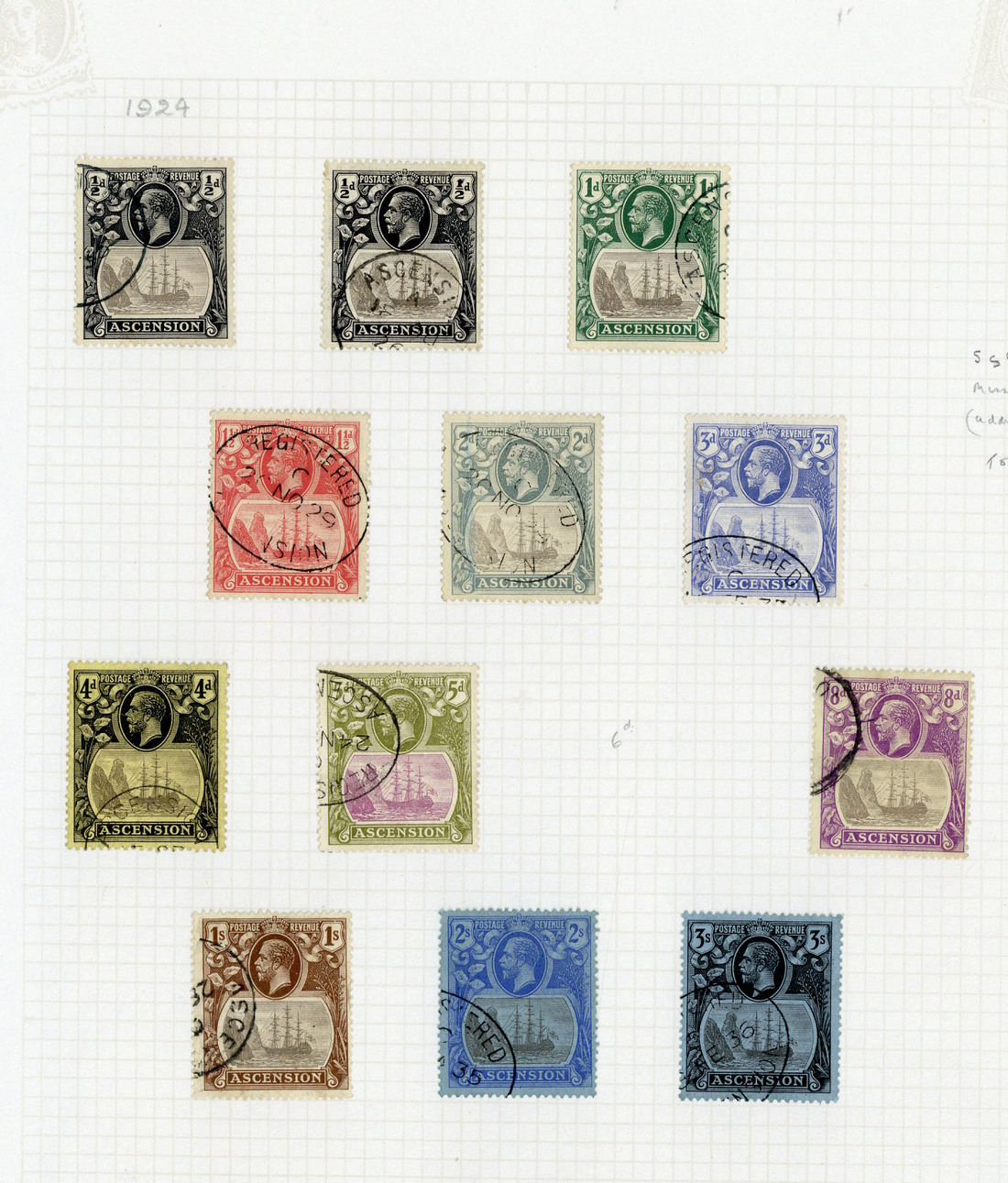 1922-73 used collection on pages, hundreds, including 1922 set with additional 2/-, 3/-, 1924-33 2/- (2), 3/- (2), 1934 Pictorial set (2), 1935 Jubilee set (2), 1938-53 set with shades and perfs., 1948 Wedding 10/-(2), 1956 set (2), 1963 Birds set (2), later issues, etc., chiefly fine