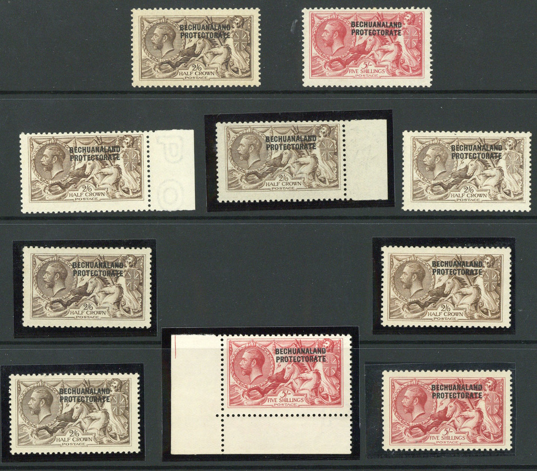1914-15 Waterlow 2/6d. and 5/-; 1916-19 De La Rue 2/6d. pale brown (3, two with margins), 2/6d. sepia (2); 1920-23 Bradbury, Wilkinson 2/6d. and 5/- (2, one corner example); large part original gum, a couple of minor imperfections, otherwise fresh and fine. S.G. 83-86, 88, 89, £1,230