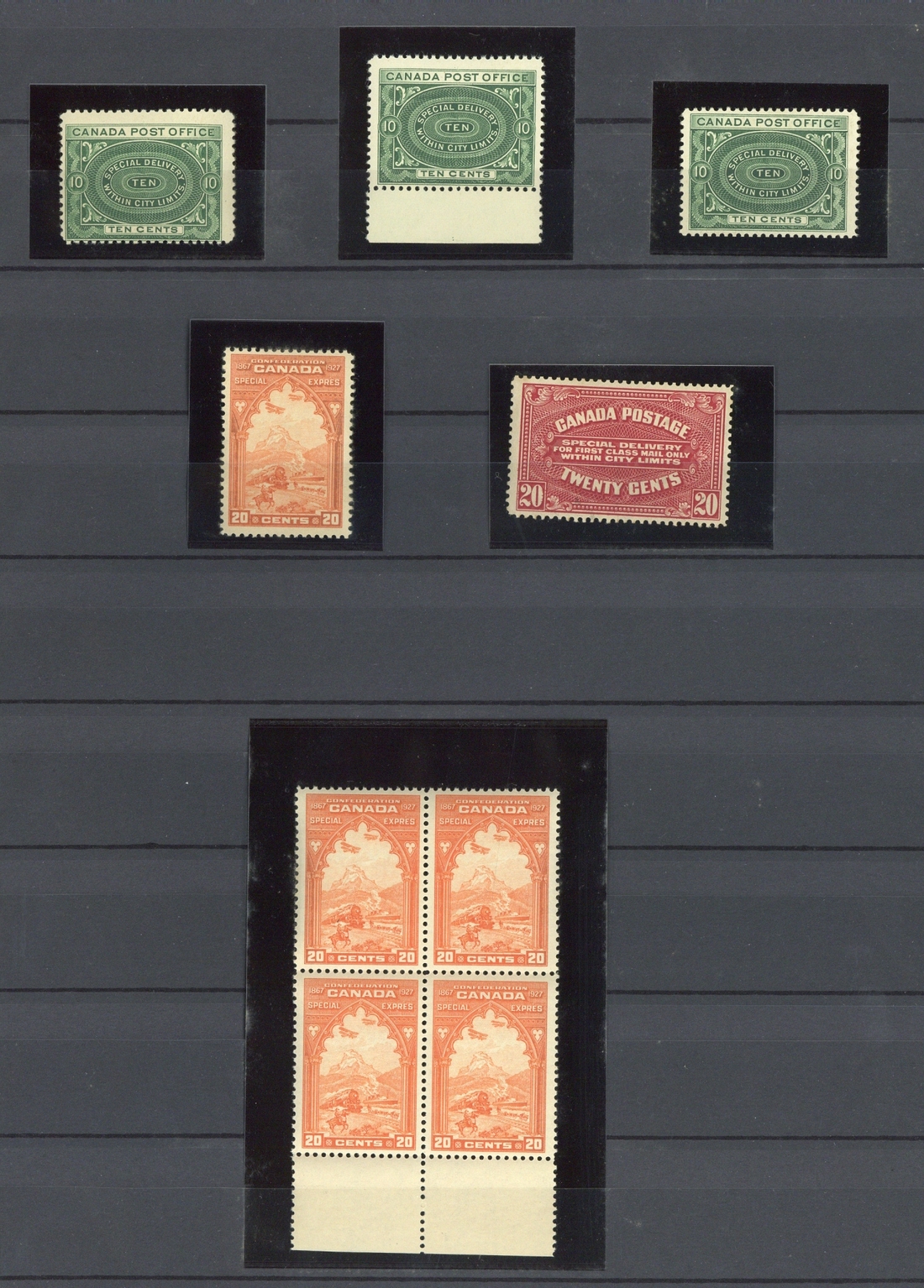 1898-1981 mint collection housed in a stockbook, hundreds, including Special Delivery 1898-1920 10c. (3), 1922 20c., 1927 20c. block of four, 1930 20c., 1932 20c. (2), 1938-29 10c., 20c., 1942-43 War Effort 10c. block of four, Postage Due 1930-32 set in blocks of four, Official 1949 Peace, 1949-50 set, 1950-51 Fisherman $1, etc., many unmounted mint, chiefly fine