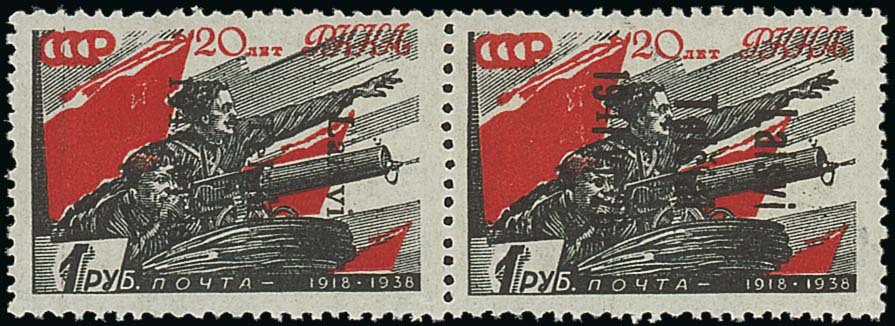 Telsiai: 1941 (July) Russia Red Army 80k., horizontal pair with type I and II overprints se-tenant, unmounted mint, fine. Signed Keiler and with Krischke Certificate for a block of four of which this is the upper pair. Michel 10I, III. Photo