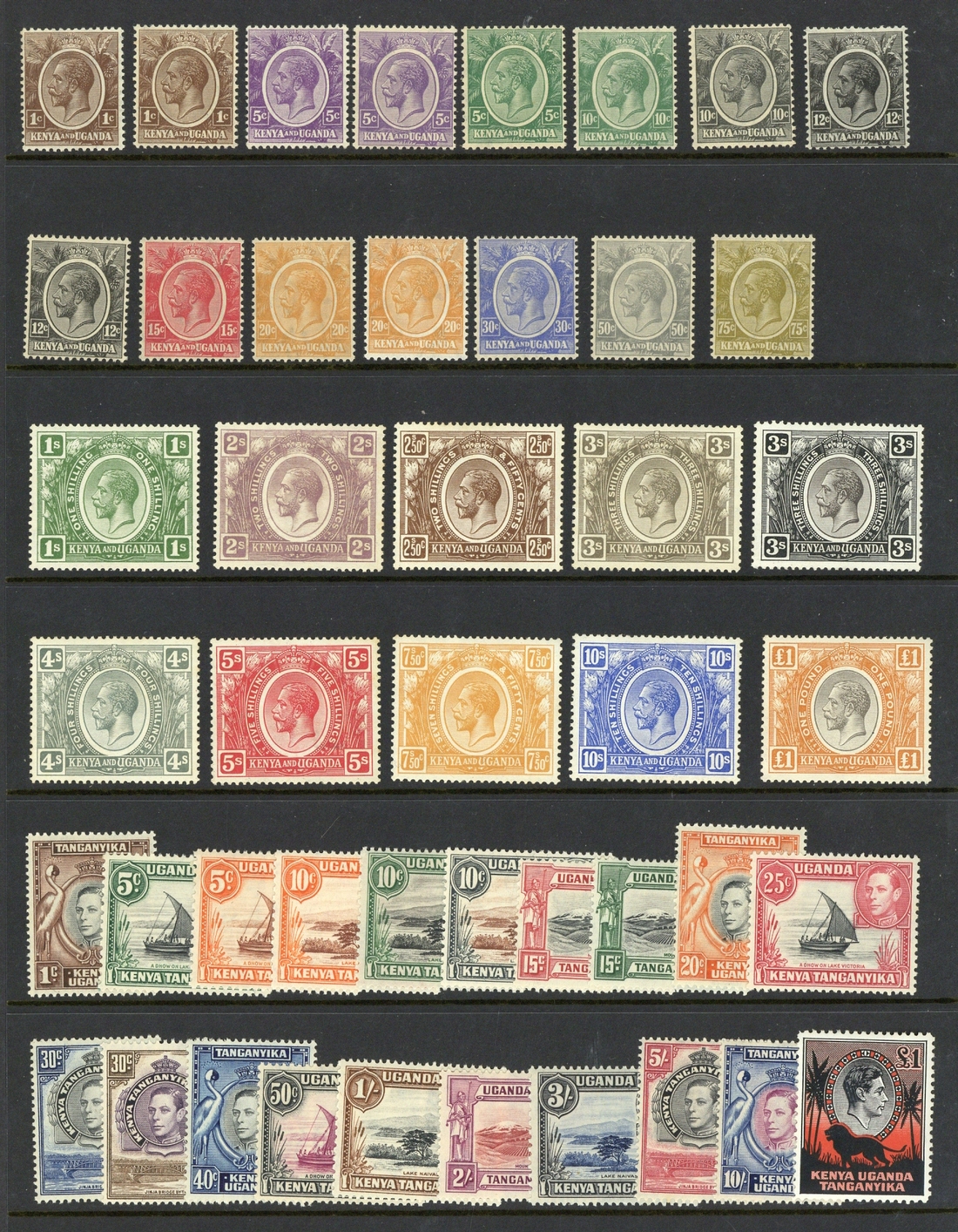 1922-54 mint selection arranged on stocksheets including 1922-27 to £1, 1935-37 values to 2/- in blocks of four and 1938-54 to £1; generally good to fine. (77)