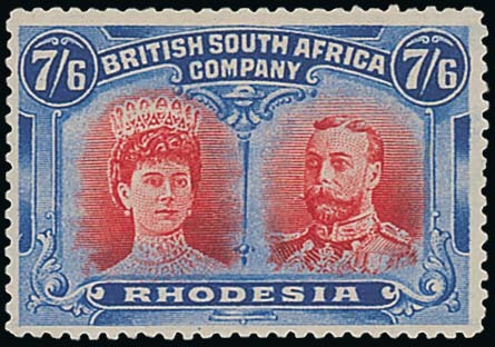7/6d. rose-red and bright chalky blue, fresh with large part original gum, a most attractive example of this lovely shade. S.G. 162 variant i. Photo