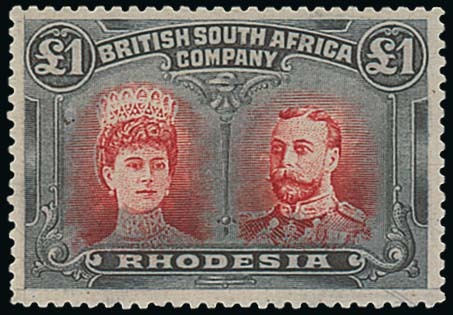 £1 carmine-red and (purplish) bluish black, fresh colours and very lightly mounted mint; a very fine example. S.G. 165, £1,700. Photo