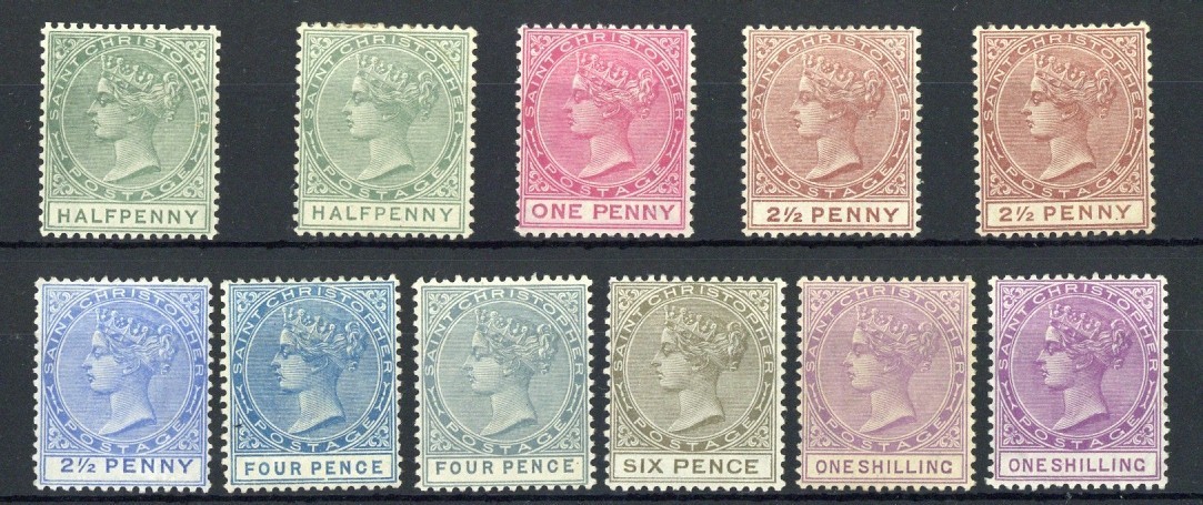 1882-90 CA ½d. (2, one with watermark sideways - heavy hinge remainder at top), 1d. carmine-rose, 2½d. red-brown (2, shades), 2½d. ultramarine, 4d. blue (small thin and a few short perfs at right), 4d. grey, 6d. and 1/- (both), mounted mint. S.G. 11-21